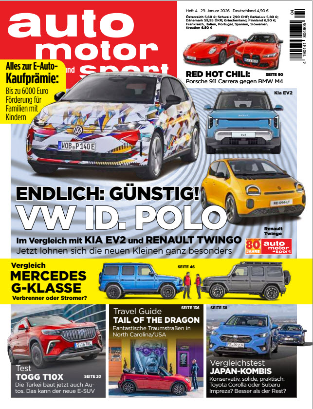 Staunen, eintauchen, entdecken, entspannen, träumen, schlau machen: Unter dieser Leitidee steht auto motor und sport seit über 65 Jahren für automobile Leidenschaft, Entdeckergeist sowie unabhängigen und einzigartigen Automobiljournalismus. Fundierte Hintergrundberichte, kritische Analysen, geheime Einblicke in die Pläne der Automobilhersteller, neueste Trends im Automobilbau und der Automobiltechnik sowie kompetente Motorsport-Berichterstattung alle zwei Wochen neu für Sie recherchiert. Erscheinungsweise: zweiwöchentlich