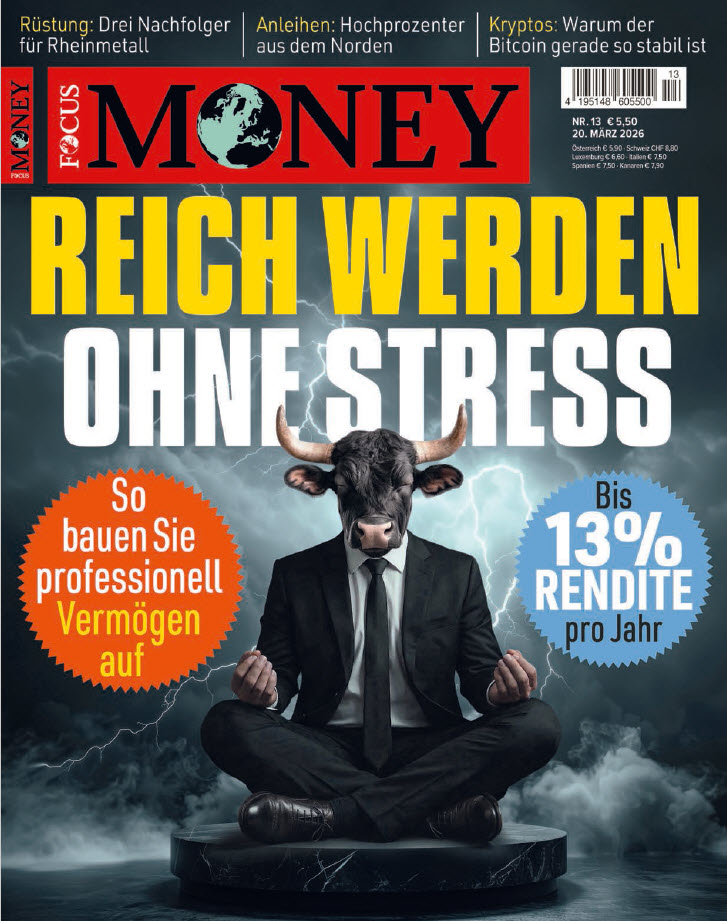 FOCUS-MONEY liefert seinen Lesern ein breites Spektrum aus Wirtschaft, Politik, Unternehmen, Steuern, Recht, Geldanlage und Versicherungen. Profitieren Sie mit FOCUS-MONEY von aktuell recherchierten Wirtschaftsfakten, fundierten Analysen und konkreten Empfehlungen rund um das Thema Geldanlage. Erscheinungsweise: wöchentlich