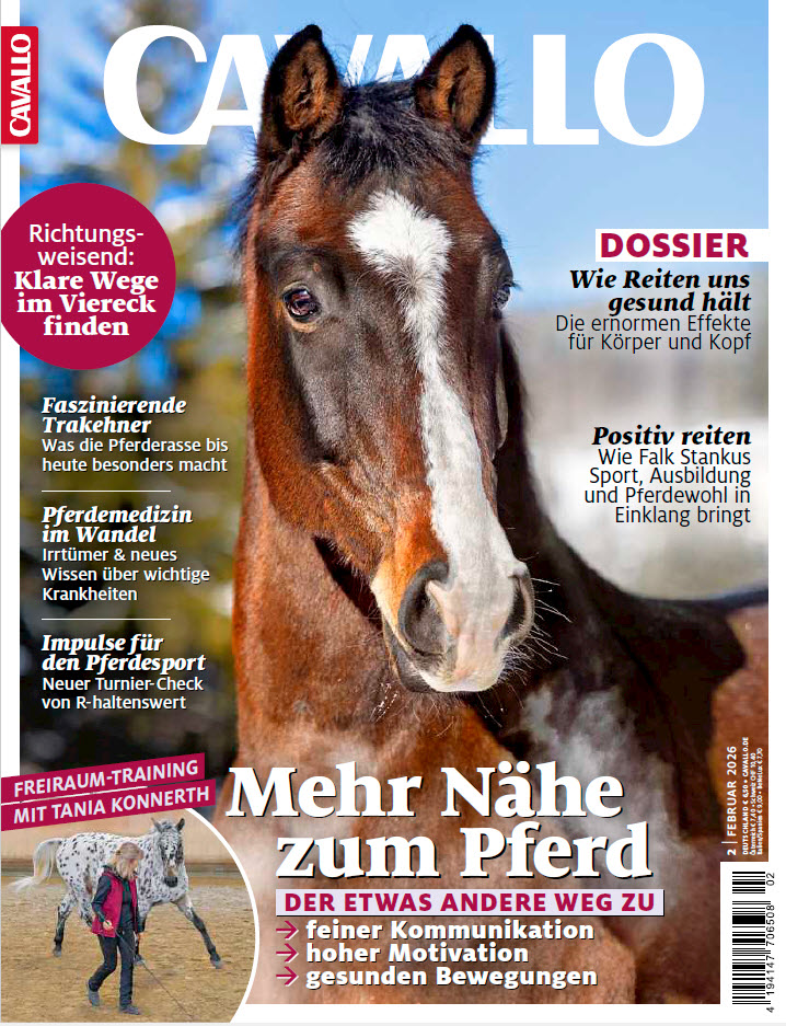 Reiten ist das schönste Hobby der Welt. CAVALLO hilft seinen Lesern, dieses Hobby jeden Tag noch ein bisschen schöner zu machen. Wir bieten allen Reitern eine Heimat, die sich in ihrer Freizeit intensiv mit Pferden beschäftigen, nach Harmonie im Sattel streben und das Wohlbefinden ihrer Tiere immer im Blick haben. Bei CAVALLO begleiten Reiter für Reiter aller aktuellen Entwicklungen kritisch und setzten immer wieder aktiv Trends pro Pferd. Erscheinungsweise: monatlich