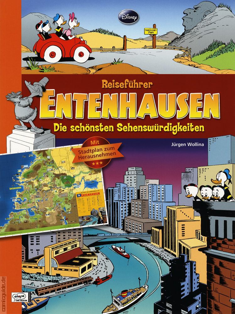 Wer dieses Jahr noch nicht weiß wohin er in den Urlaub fahren soll, dem empfiehlt sich eine gedankliche Reise nach Entenhausen! Denn wo genau liegt eigentlich dieses famose Entenhausen? Wo wohnt Donald, wo steht Dagoberts Geldspeicher? Muss Gustav Gans durch düstere Gassen schleichen, um Daisy einen heimlichen Besuch abzustatten? Und wie kommt es, dass die Bewohner der Stadt an der »Gumpe« in Nullkommanix sowohl am Strand liegen als auch in den Bergen zum Skifahren sein können?