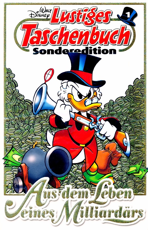 Zum 65. Jahrestag von Dagobert Duck gab Egmont Ehapa Verlag die 4-bändige Sonderedition “Aus dem Leben eines Milliardärs” heraus. Alle 4 Bände mit Sondereditions-Sammelbox [natürlich auch einzeln erhältlich]. Diese Ausgabe hat zwar keinerlei Stories, die in die Genres passen, ich habe ihn aber aufgenommen, um die vollständige Edition vorzustellen! Alle Stories dieses Bandes passen in das Genre “Dagobert in Not” – und es geht vorzugsweise um seinen Geldspeicher. Es gab auch eine Sammelbox-Edition mit einer Münze als Beilage.