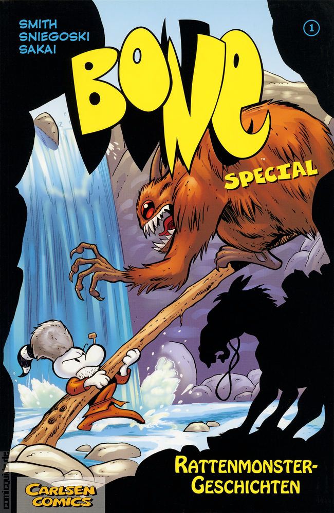 Obwohl Jeff Smith mit Hochdruck an seinem »Bone«-Kinofilm arbeitet, setzt er, entgegen seiner ursprĂĽnglichen AnkĂĽndigung, auch seine Comicserie fort. Und dank der Mithilfe von Tom Sniegoski und Stan Sakai hat er sogar die Zeit gefunden, zusätzlich noch eine weitere Geschichte um die aus »Bone« bekannten Rattenmonster zu zeichnen. Diese bekommen es mit Big Johnson Bone, einem Vorfahren der knubbeligen Cousins, zu tun, der dem Geheimnis auf die Spur kommt, warum die Rattenmonster keine Schwänze haben. AuĂźerdem enthält das »Bone Special« die von Stan Sakai gezeichnete Story um das Wildschweinbaby Riblet, das von Rattenmonstern entfĂĽhrt wird – und diesen das Leben zur Hölle macht.