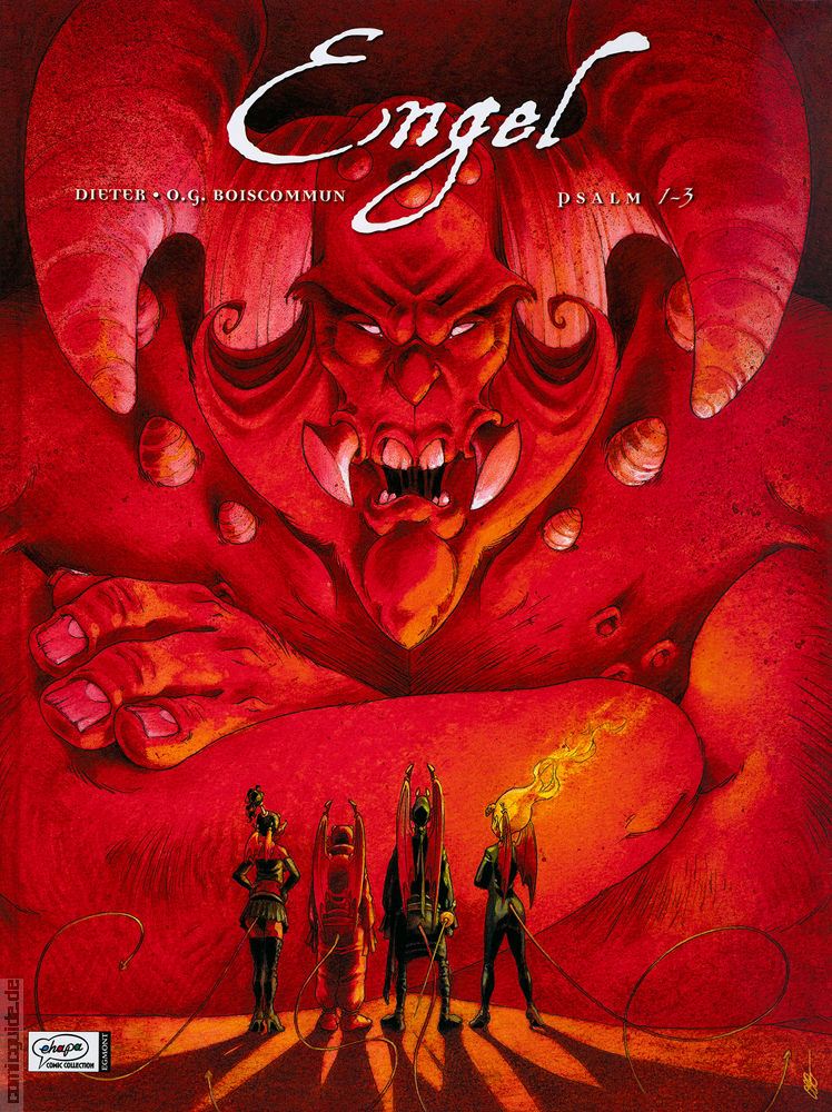 Bei »Engel« handelt es sich um eine Fantasy-Geschichte, die grafisch nichts zu wünschen übrig lässt. In zauberhaften Bildern erzählt Boiscommun die Geschichte der zwei Wärterengel Jéliel und Yésod, deren Aufgabe es ist, die Kirchengemeine St. Eustache zu beschützen. Die Wächter werden gefordert, als kleine, teuflische Dämonen die Idylle zu zerstören drohen. Im Zeichen des Guten machen Sie sich ans Werk, ihre neuen Feinde zu bekämpfen.