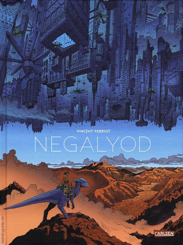 Vincent Perriot vereint im Stil Moebius‘ prähistorische Kreaturen, Science-Fiction-Urbanismus sowie Low-Tech-Schiffe. Dieser futuristische, dystopische Western präsentiert in großartig kolorierten Panels mit prächtigen Dekoren eine Geschichte über Widerstand aber auch über die Entdeckung des Selbst und des Anderen.