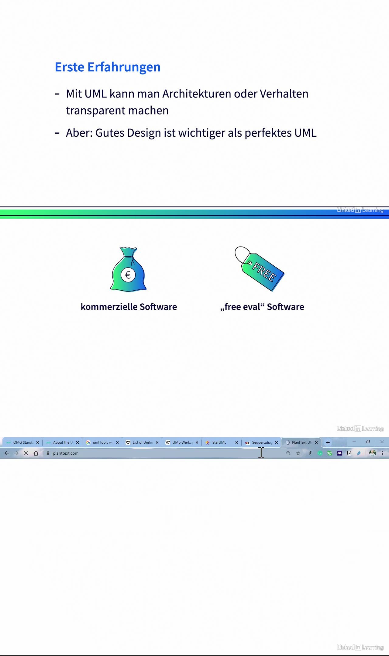 Spätestens mit dem Aufkommen vieler neuer Programmiersprachen in den 50er, 60er Jahren ist klar, dass es etwas mehr auf der Metaebene geben muss als nur Programmieren. Dementsprechend hat sich die Softwaretechnik eigentlich zuerst auch mehr als theoretisches Feld etabliert, mit solchen Themen wie Requirements, Analyse oder dem Design. Dies genau bildet der hier vorliegende Kurs eigentlich ab. Später kamen dann in der Softwaretechnik viele praktische Gebiete hinzu wie Testen, Bildmanagement oder Versionsmanagement. Das decken wir danach mit weiteren Kursen ab, die sich dann auch mit fortgeschrittenen Themen der Softwaretechnik beschäftigen und das ganz besonders, weil hier in letzter Zeit auch durch die großen IT-Player einige neue Sichtweisen hinzugekommen sind, wie bspw. die Zeit und insbesondere Veränderungen der Software über die Zeit und die Skalierung von Software, das Wachstum von Software. Daraus haben sich viele neue Gebiete ergeben wie z.B. Continous Integration und Continous Delivery. Im Internet und in der Literatur gibt es daher viel zu all den Einzelteilen der Softwaretechnik, aber selten etwas Zusammenhängendes. Genau dies will ich Ihnen aber hier quasi als Gesamtwerk bieten und deshalb viel Spaß mit diesem ersten Teil der Softwaretechnik. Ihr Stefan Edlich.