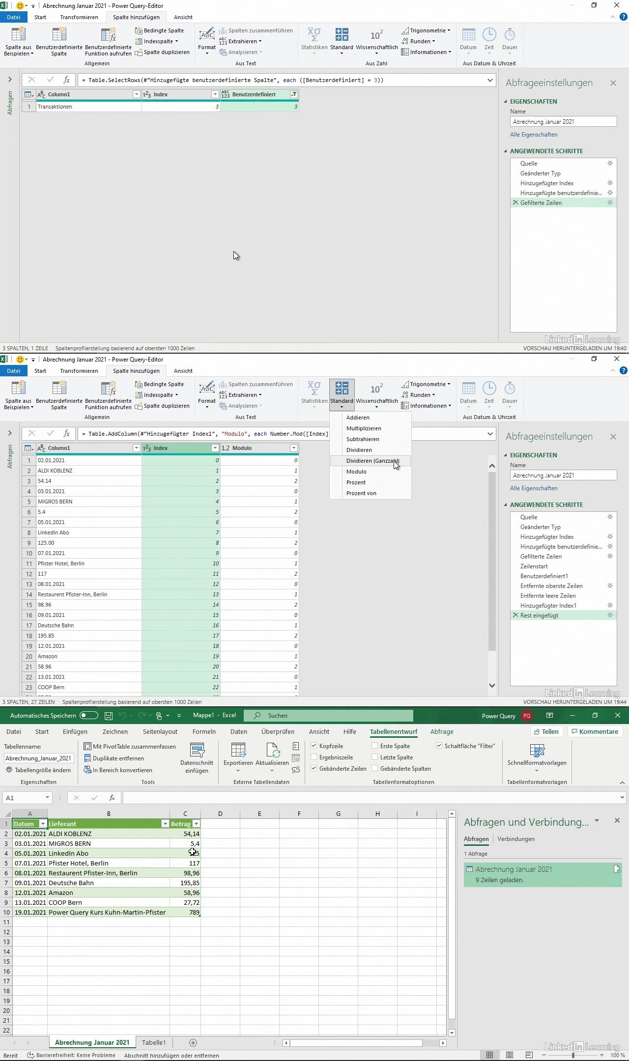 Für diesen Kurs haben sich die Power-BI-Experten Tanja Kuhn, René Martin und Hans Peter Pfister zusammengetan und präsentieren Ihnen Lösungen für verschiedenste Problemstellungen, die ihnen in ihrer Praxis untergekommen sind. Nutzen Sie das gesammelte Know-how und lassen Sie Power Query noch besser für Sie arbeiten.
