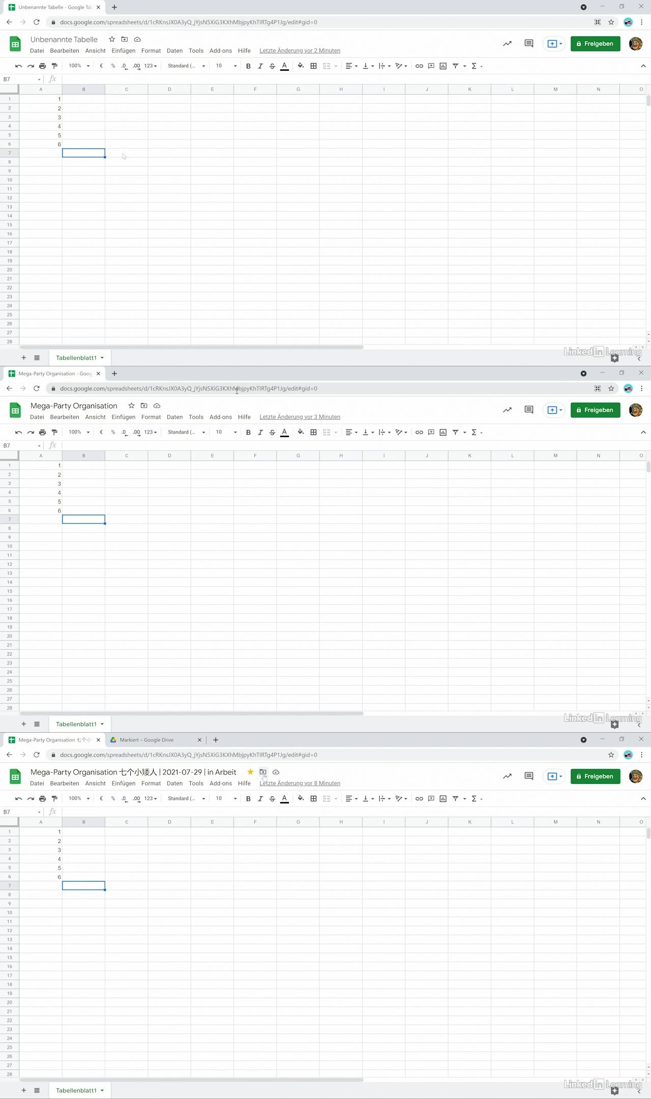 Dabei erlernen Sie sich nicht nur die wesentlichen Basisfunktionen einer Tabellenkalkulation, sondern Sie sehen auch an praktischen Beispielen, wie Sie »kollaborativ« im selben Dokument in Echtzeit Daten erfassen, teilen und bearbeiten können.