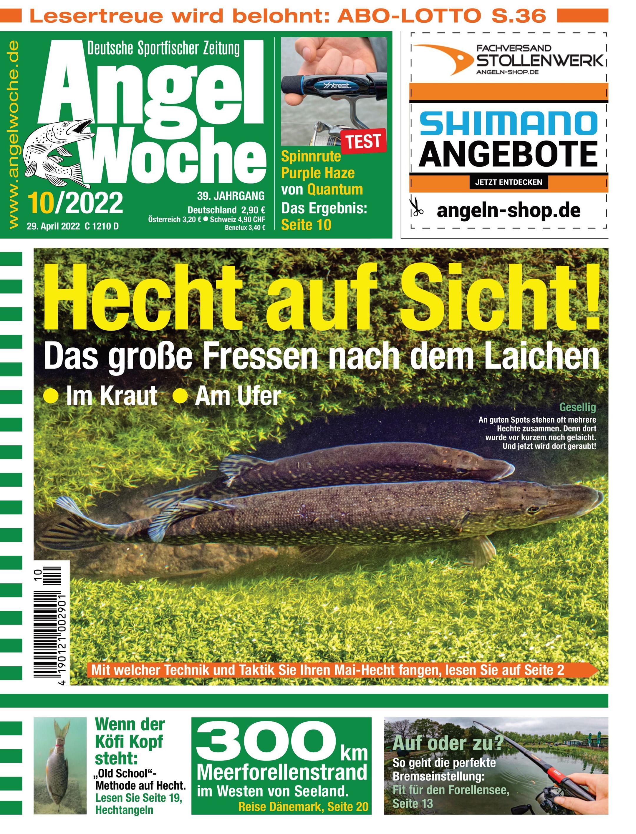 AngelWoche das ist fachliche Kompetenz rund ums Hobby Angeln und den Angelsport. Mit 26 Ausgaben pro Jahr informiert AngelWoche aktueller als andere deutsche Angeltitel über Fische und Fänge aus Angelreise Zielen vor allem in Deutschland, Norwegen, Dänemark und Schweden. Über Neuheiten aus der Angelgeräte Industrie, vom Angelgeräte Fachhandel und Tackle Tests. Reich bebilderte Fanggeschichten und relativ kurz gehaltene Artikel, verbunden mit einer großen Themenvielfalt, kommen dem Lese- und Konsumverhalten der Zielgruppe Angler entgegen. Als Deutschlands meist verkaufte Angelzeitschrift hat AngelWoche bei Anglern einen hohen Bekanntheitsgrad. Es gibt kaum einen Jungangler oder Angel-Einsteiger, der nicht erst AngelWoche gelesen hat, bevor er das erste Mal ans Gewässer geht. Aber auch Angel Profis informieren sich ständig in der AngelWoche über das aktuelle Geschehen am Gewässer. Gerade deshalb ist AngelWoche das ideale Angelmagazin für Praxis- und Outdoor orientierte Angler, die ihre Freizeit gern und häufig in der Natur verbringen.
