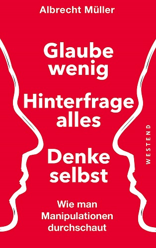 Demokratie klingt schön. Tatsächlich wird sie täglich ausgehöhlt. Wir alle werden ständig bedrängt zu denken, was andere uns vorsagen. Die meisten politischen Entscheidungen werden unter dem Einfluss massiver Propaganda getroffen – von der Agenda 2010 bis zu den neuen Kriegen. Dieses Buch hilft, sich aus dem Gestrüpp der Manipulationen zu befreien. Albrecht Müller beschreibt gängige Methoden der Manipulation sowie Fälle gelungener oder versuchter Meinungsmache und analysiert die dahintersteckenden Strategien. Es ist an der Zeit, skeptischer zu werden, nur noch wenig zu glauben und alles zu hinterfragen. Es ist Zeit, wieder selbst zu denken.