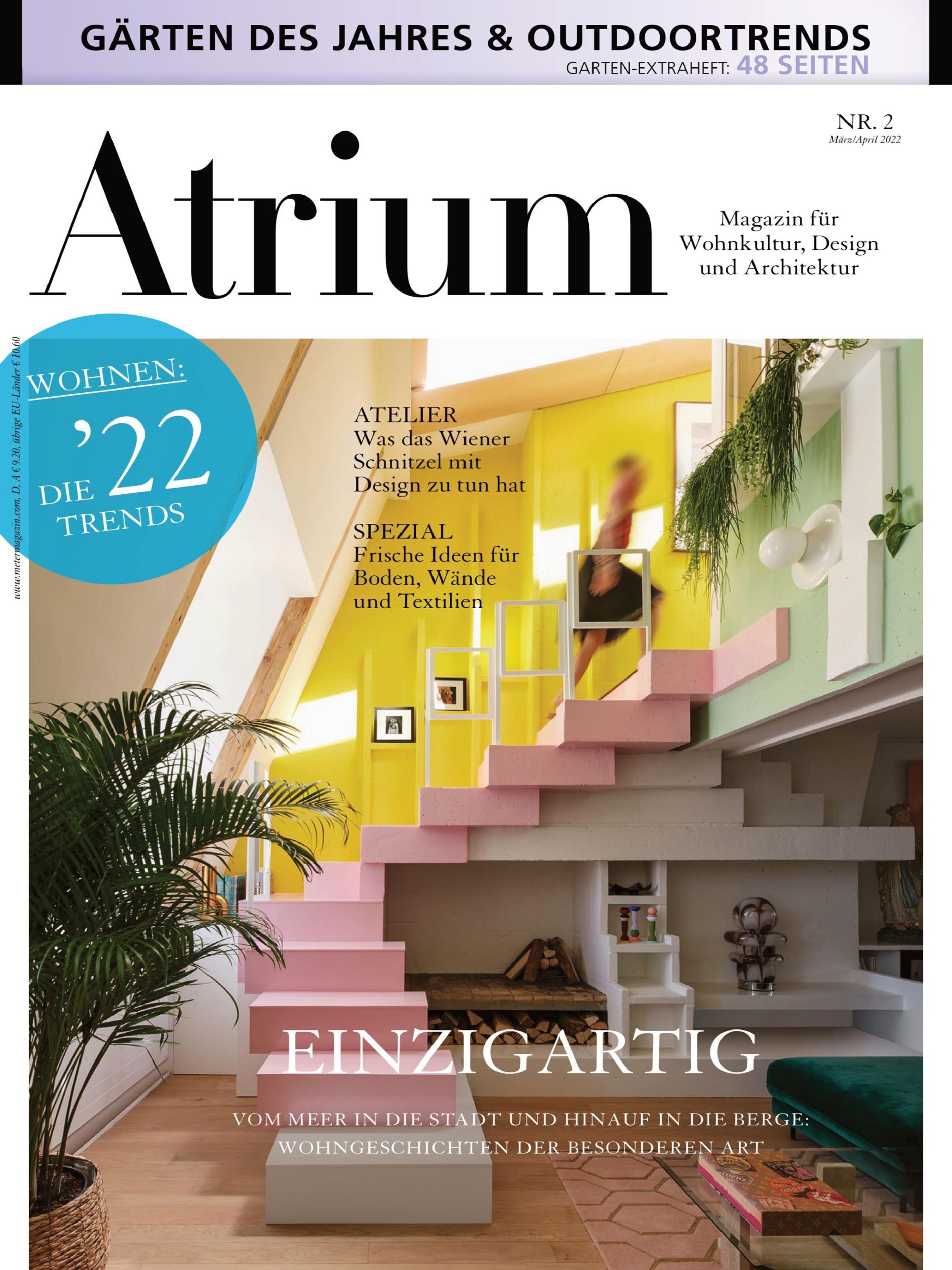 Atrium gilt als bedeutende Spezialzeitschrift für Design und Architektur und richtet sich an eine interessierte und gut situierte Leserschaft mit einem hohen Anteil an Eigenheimbesitzern.