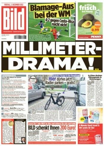 Bild Zeitung vom 02. Dezember 2022
