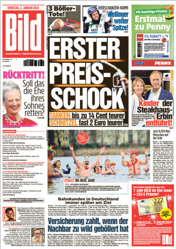 Bild Zeitung vom 02. Januar 2024