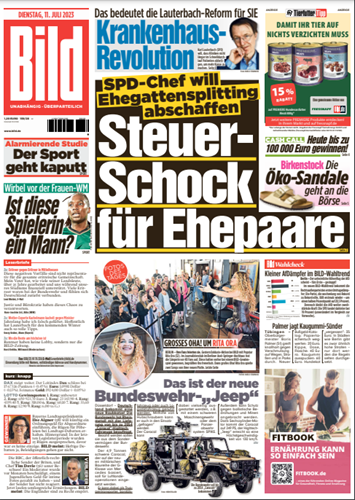 Bild Zeitung vom 11. Juli 2023