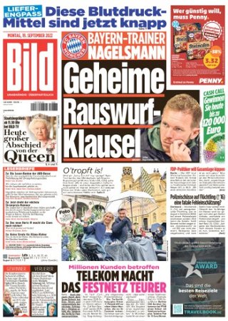 Bild Zeitung vom 19. September 2022