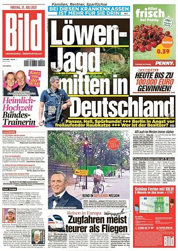 Bild Zeitung vom 21. Juli 2023