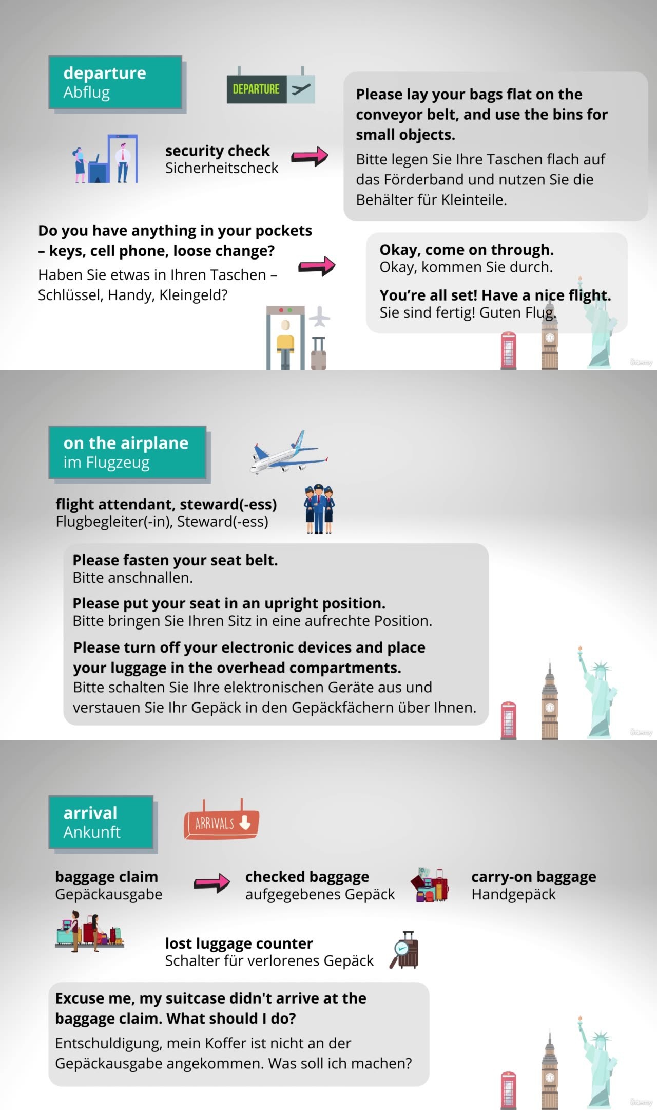 Lerne Vokabular zu allen wichtigen Reisethemen