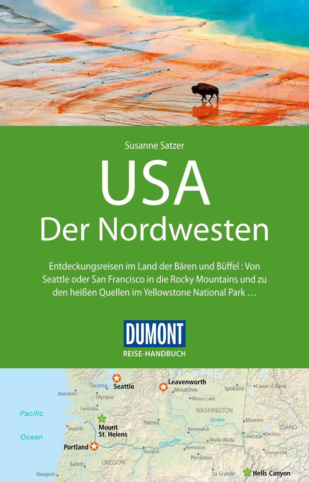 Für die 3. Auflage des DuMont Reise-Handbuches war Autorin Susanne Satzer wieder intensiv vor Ort unterwegs. Wer sich ihr anvertraut und mir ihr den Nordwesten der USA bereist, wird bald verstehen, weshalb so viele Amerikaner ihr Land für das schönste der Welt halten: Pulsierende Metropolen mit hohem kulturellem Standard wetteifern mit nahezu unberührten Naturlandschaften zwischen den Gebirgszügen der Rocky Mountains und der Coastal Range. Von Seattle im Nordwesten bis zu Montanas Geisterstädten Virginia City und Nevada City im Osten, von den Gletschern und schroffen Gipfeln des Glacier National Park im Norden bis zur Mondlandschaft des Craters of the Moon National Monument im Süden werden alle sehenswerten Regionen und Städte beschrieben. Ort für Ort hat Susanne Satzer ausgesuchte Unterkünfte, Restaurants oder Einkaufsadressen zusammengestellt, die in den Cityplänen eingezeichnet sind. Wanderungen erschließen die schönsten Landschaften, etwa die herrliche Umgebung des Yellowstone Lake im gleichnamigen Nationalpark oder den Redwood National Park mit seinen Baumgiganten. Viel Wissenswertes über den Nordwesten der USA, über seine Geschichte und Gegenwart oder den Alltag der Menschen lässt sich in der einführenden Landeskunde wie in den eingestreuten Themenseiten nachlesen.