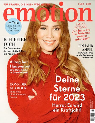 EMOTION ist DAS Magazin für selbstbestimmte Frauen. Wir machen euch stark – mit Themenschwerpunkten aus Psychologie, Persönlichkeit, Leben und Arbeit, Gesellschaft, Mode, Beauty, Reisen und Kultur. Außerdem informieren wir euch in unserer Rubrik SLOW über Achtsamkeit, Nachhaltigkeit und verraten tolle Ideen zum Runterkommen und Genießen. Unsere Events: Mit unserem EMOTION.award zeichnen wir jährlich herausragende Frauen aus und beim EMOTION Womens’ Day verbinden wir hunderte Frauen miteinander, sich gegenseitig zu fördern und zu empowern.