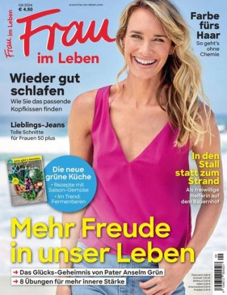 Frau im Leben ist die Zeitschrift für Frauen, die mitten im Leben stehen und wissen was sie wollen. Jede Ausgabe mit über 100 Seiten liefert monatlich Themen, die Frauen ab 40 interessieren. Als Extra finden Sie in jeder Ausgabe das 16-seitige Sonderheft Daheim mit Themen rund ums Kochen, Basteln, Stricken uvm.