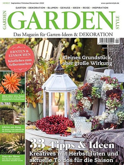 GARDEN STYLE ist ein hochwertiges Premium-Magazin fĂŒr eine anspruchsvolle Zielgruppe, die ihren gehobenen Lifestyle auch im Garten leben will. Inhaltlich umfasst das Magazin eine ansprechende Bandbreite: Dazu gehören inspirierende PrivatgĂ€rten genauso wie Ideen zur Gestaltung, PortrĂ€ts von neuen Pflanzen und Klassikern wie der Rose, florale Deko-Ideen, die dem saisonalen Rhythmus folgen, sowie eine gepflegte Lebensart, die mit feinen