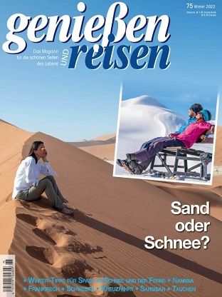 Genießen und Reisen entführt den Leser in die vielfältige Welt des Genusses: Gourmetrips und -tipps, kulinarische Rezepte zum Ausprobieren, Tisch- und Tafelkultur, Gastlichkeit mit Feinschmecker-Potenzial für sich, zu zweit und den Freundeskreis, anspruchsvolle Hotels und Restaurants auf der ganzen Welt, Wellness-Angebote und vieles mehr rund um die schönen seiten des Lebens. Prominente Köche, bekannt aus den Medien, TV, etc., präsentieren den Lesern ihre exklusiven Rezepte und Menüvorschläge zum Nachkochen.
