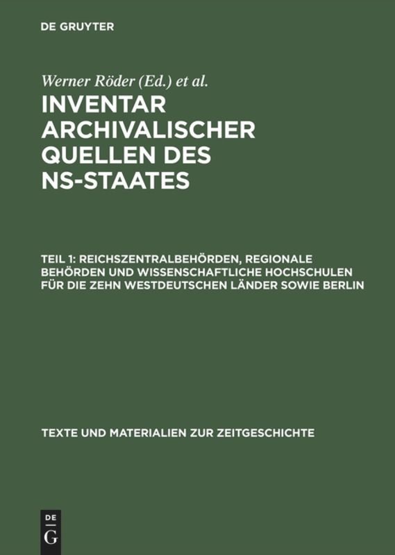 Dieses Inventar liefert erstmalig einen Nachweis über den Verbleib des Schriftgutes zentraler Behörden und Einrichtungen des NS-Staates in allen staatlichen Archiven. In Teil 1 ist das diesbezügliche Archivgut der zehn westdeutschen Länder und Berlin nach einheitlichen Gesichtspunkten erfaßt und beschrieben. Die Gliederung erfolgte nach Verwaltungs- bzw.