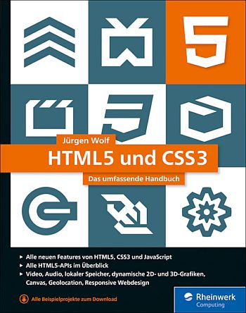 Die neuen Webstandards HTML5 und CSS3 und die HTML5-APIs bieten Ihnen alle Möglichkeiten, um moderne Webseiten zu erstellen und zu gestalten. Dieses Buch zeigt Ihnen, wie Sie die neuen Funktionen einsetzen: Video, Audio, Bilder, 2D- und 3D-Grafiken, lokaler Speicher, abgerundete Ecken, Schatten, Transparenzen, Schriftarten, Geolocation, Drag & Drop und mehr. Jürgen Wolf macht Sie umfassend mit Syntax, Aufbau und Struktur von HTML vertraut und bietet Ihnen zahlreiche konkrete Beispielprojekte. Sie lernen, wie Sie mit CSS3 aufwendige Layouts gestalten und lernen darüber hinaus CSS-Präprozessoren kennen. Außerdem bietet das Buch eine grundlegende Einführung in JavaScript, Ajax und jQuery. Ein Lern- und Nachschlagewerk für jeden, der die neuen Features von HTML5 und CSS3 effektiv nutzen möchte.