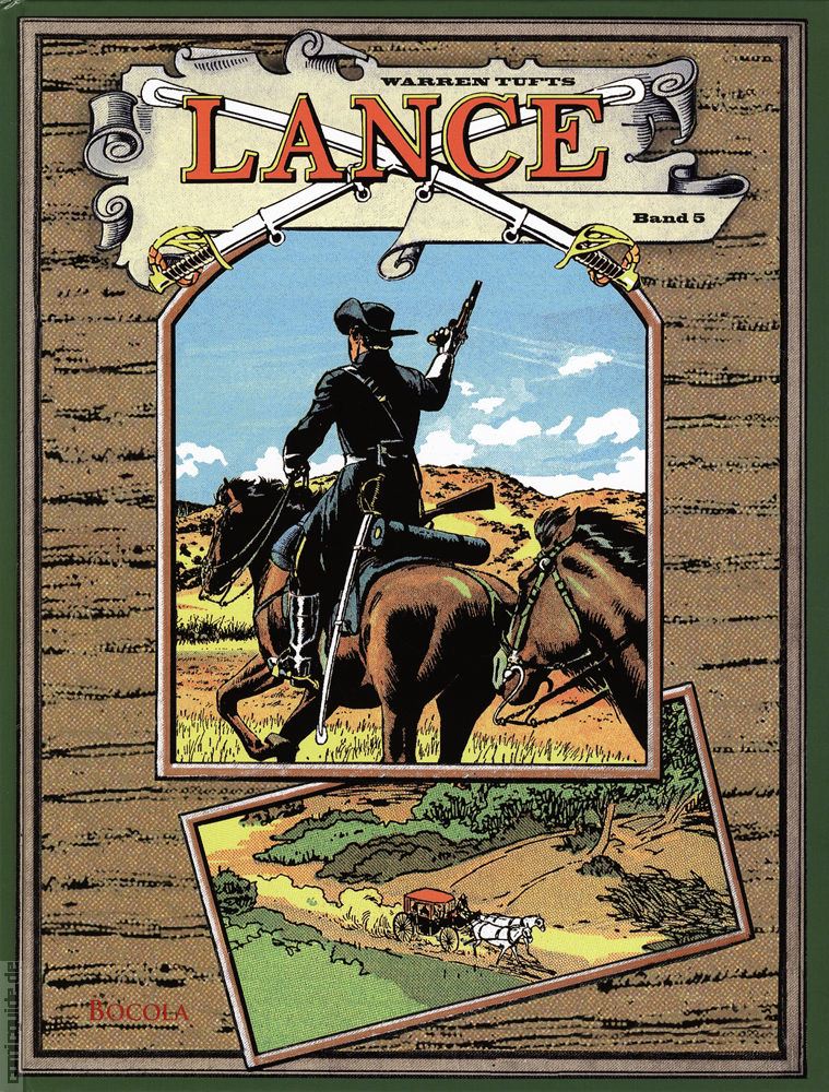 Lance wird nunmehr erstmals komplett in deutscher Sprache veröffentlicht. Ursprünglich erschien dieser großartige Western-Comic als farbige Sonntagsseiten (Juni 1955 bis Mai 1960, insgesamt 261) und 13 Monate lang (Januar 1957 bis Februar 1958) zusätzlich mit schwarz-weißen Tagesstrips. Bocola bringt die gesamte Serie digital restauriert in fünf Hardcover-Alben heraus.