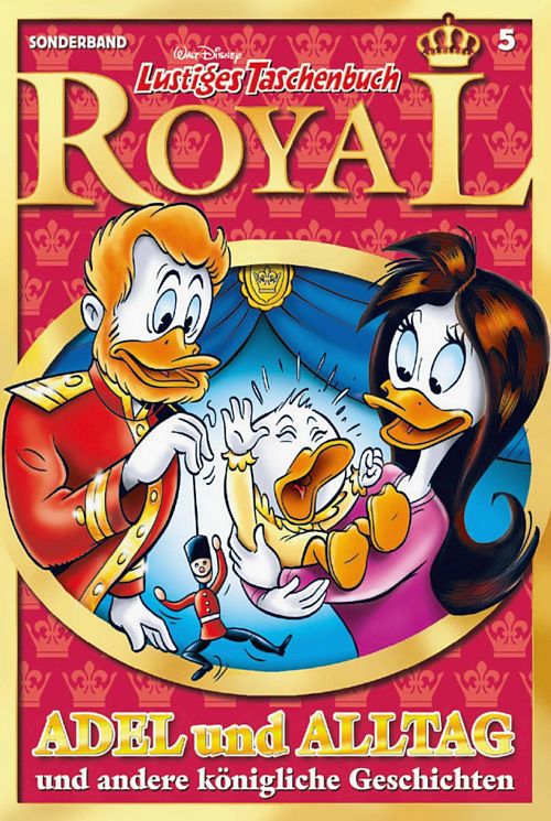 Großbritannien feiert sein Thronfolgerchen, und wir vom Lustigen Taschenbuch schicken einen eigenen Kandidaten ins Rennen – das LTB Royal! Allein die epische Adels-Saga um die fürstlichen Liebeswirren der bürgerlichen Daisy Ducklinger alias Daisy von Duckenburg erreicht mit ihren stolzen 13 Teilen geradezu imperiale Ausmaße. Erobert Daisy das Herz des blaublütigen Graf Donald von Undzu oder hat sich das Schicksal gegen sie verschworen? Und wie beruhigt man eigentliche ein weinendes Thronfolgerchen?