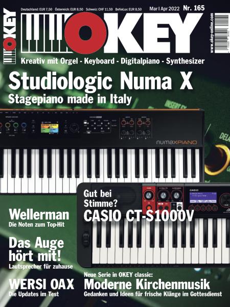 Alle zwei Monate bietet OKEY eine Vielzahl interessanter Reportagen aus der Tastenszene, Workshops, Testberichte der neuesten Tasteninstrumente, Lautsprecher, Musiksoftware-Programme und weiterer Zubehör-Produkte sowie spezielle Ntenarrangements für Orgel und Keyboard. Als Heft im Heft ist OKEY classic als einziges deutschsprachiges Magazin speziell für digitale Sakralorgeln, Hauptwerk-Installationen und Samplesets ein fester Bestandteil jeder OKEY Ausgabe.