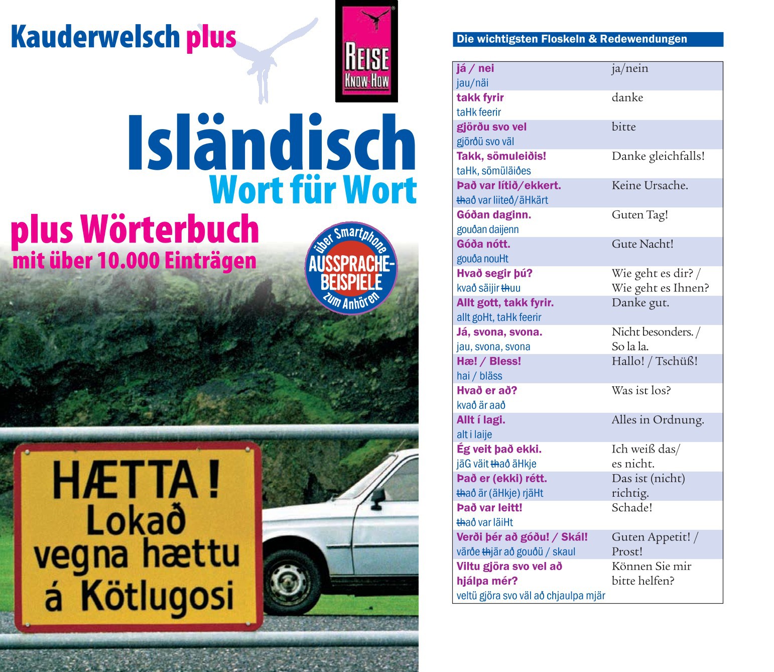In der PLUS-Reihe wird der bewährte Kauderwelsch-Sprachführer durch ein umfangreiches Wörterbuch ergänzt. Die ca. 10.000 ausgewählten Vokabeln sind auf Besonderheiten des Sprachraums und die Bedürfnisse von Reisenden in Island abgestimmt.