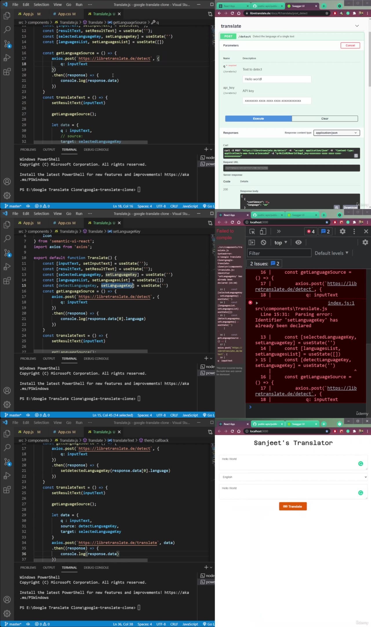 In this course, we cover all the steps from creating an app in React all the way through to build a Translator Application in React