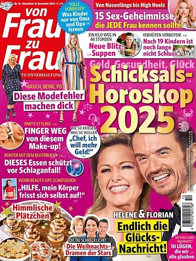 Mode & Schönheit, Aktuelles & Schicksale, Gesundheit & Ernährung, Kochen & Backen, Ratgeber, Reise- und Relax-Tipps – in von Frau zu Frau finden die Leserinnen all diese interessanten Frauenthemen in ansprechenden Texten und einem gut durchdachten Design.