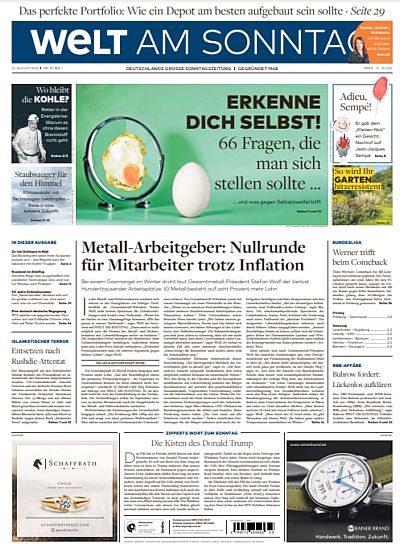 Welt am Sonntag vom 14. August 2022