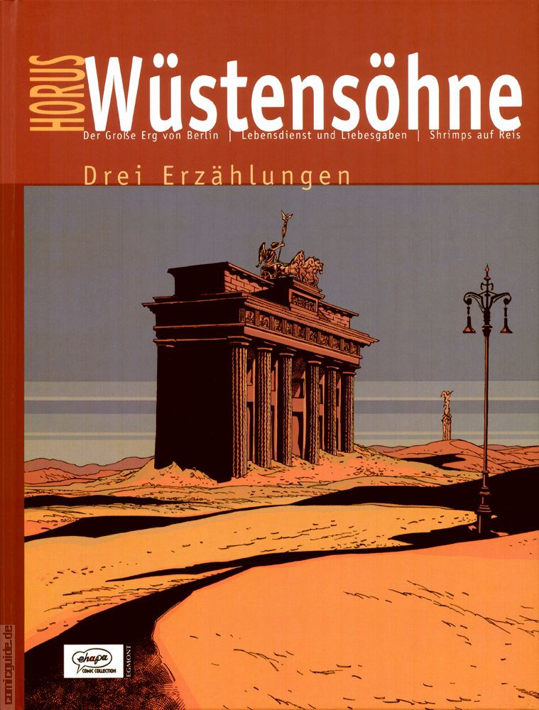 In seinem neusten Werk »Wüstensöhne« begegnet Horus faschistischen Strukturen und der von diesen ausgehenden kulturellen Zerstörung mit geballter Kraft von Wort und Bild. Der Dialog »Der große Erg von Berlin«, der Monolog »Lebensdienst und Liebesgaben« und der fiktive biografische Bericht »Shrimps auf Reis« dringen vor zu den Abgründen menschlicher Schicksale. Ein literarisch-grafischer Spiegel gesellschaftlicher Prägungen. Ein Versuch.